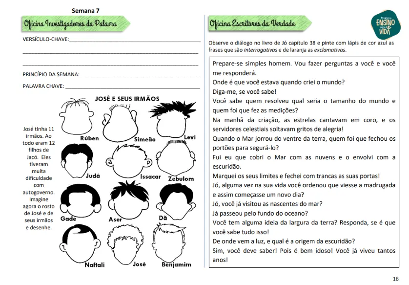 Bloco Nível 2 - Oficina Bíblica e Reforço Escolar - Alunos de 7 a 10 anos