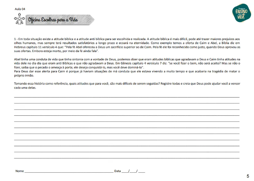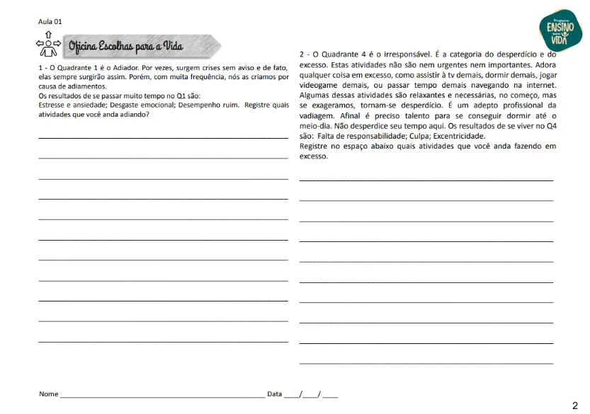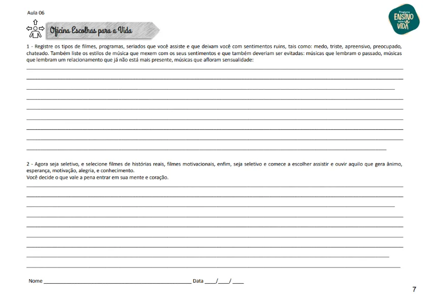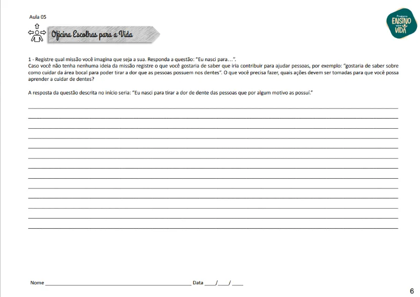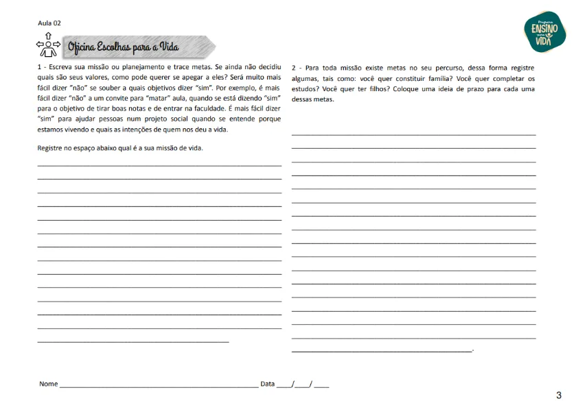 O Bloco que você está adquirindo contém o material da Oficina 1: Escolhas para a Vida.