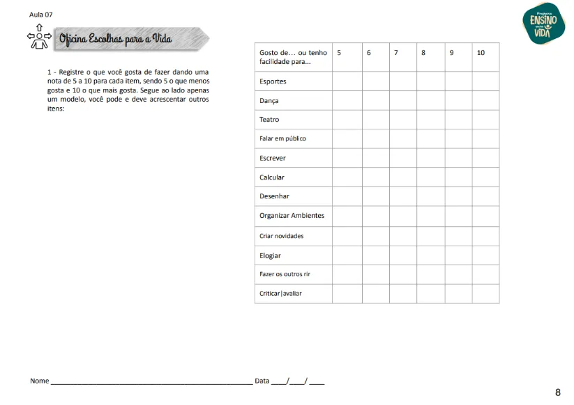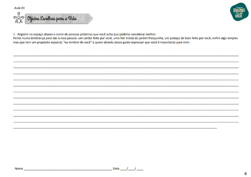 Bloco Nível 4 - Escolhas Para a Vida - Alunos de 15 a 18 anos