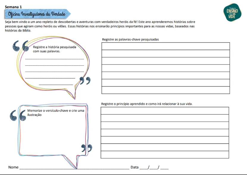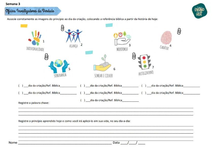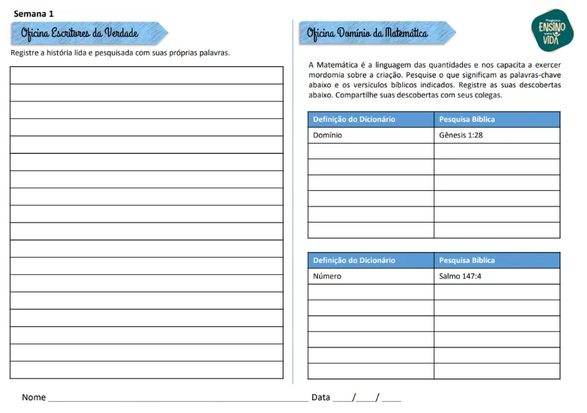 O Bloco que você está adquirindo contém o material da Oficina 1: Bíblica e Reforço.