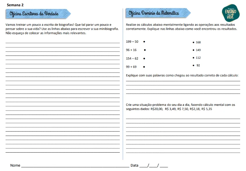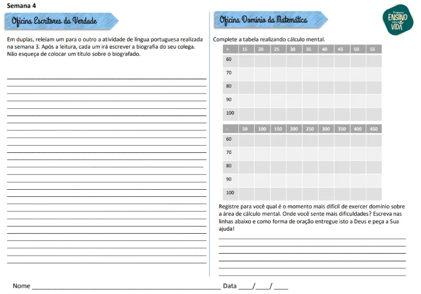 O Bloco contém em média 50 páginas e é organizado para ser aplicado em 30 semanas.