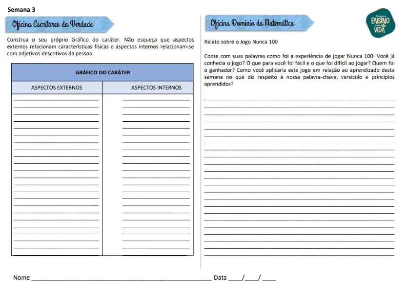 Nível 3 - Oficina Bíblica e Reforço Escolar - Bloco do Aluno de 11 a 14 anos